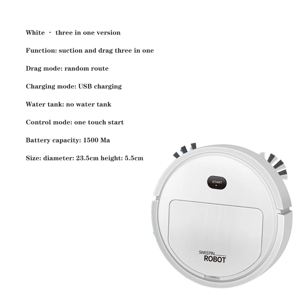 Prático, leve e funcional, o Robô Aspirador Automático 3 em 1 é a escolha perfeita para quem quer uma casa limpa com mais comodidade.